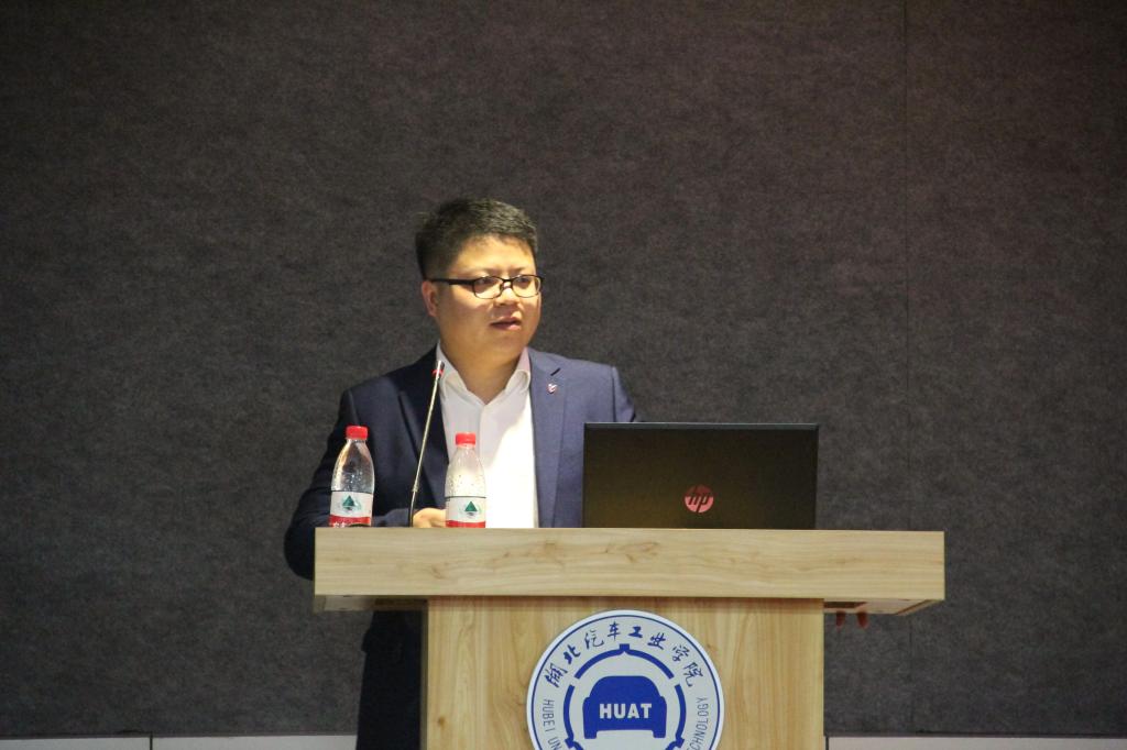 金龙招聘部经理周芃担任主讲人,他结合当前国内的就业形势和政策,对我校毕业生的就业情况做了简单的介绍和分析。随后通过视频宣传片对公司概况、企业文化、员工培养模式、企业的发展状况及前景等方面向学生们做了详细的介绍。他还结合近年来我院被录用学子在企业的优异表现对车辆工程专业的人才培养模式表达了高度的肯定。期间,他特意展示了一段由我院16级毕业生入职后亲自策划录制并配音完成的企业青春宣传片,精彩的画面、专业的剪辑赢得现场一片热烈掌声。他说到,“此次宣讲会除了介绍企业的概括、招聘岗位、用人标准等,还希望宣扬金龙公司的文化和精神。汽院是我们公司的优质合作单位,此次招聘首站就是汽院,这里有我们所需要的综合能力强、技术本领硬、才艺丰富多彩的青年人才!期待更多的有志之士加入金龙!”