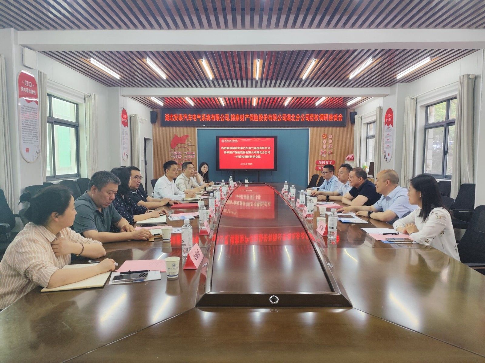 本网讯(文/图 王裕)4月16日下午,学校与湖北安泰汽车电气系统有限公司、锦泰财产保险股份有限公司湖北分公司座谈会在英国威廉集团二楼会议室举行。党委副书记、校长王晓,党委常委、党政办主任王文山,与来访企业代表齐聚一堂,共话合作发展。