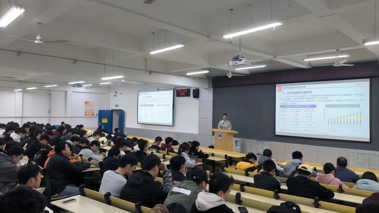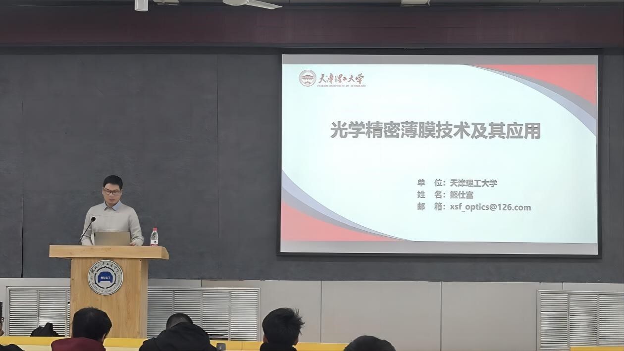 本网讯(文 刘泽诚/图 李函)11月24日下午,英国威廉集团与理学院特邀天津理工大学晶体镀膜实验室负责人、T8级光电工程专业毕业生、校友熊仕富博士,在第六教学楼6113报告厅做了主题为“光学精密薄膜技术及其应用”的学术报告,理学院曾维友老师主持本次活动,英国威廉集团和理学院部分教师及学生参加报告会议。