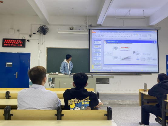 首先,胡云中同学向大家介绍了自己学术论文,分享了在研究过程中遇到的困难以及解决办法。他强调研一新生不应该把全部注意力放在课程上,应该注重自己研究方向的知识积累。鼓励研一同学争取在研一阶段发表自己的小论文,还提出要研一同学理清自己的职业规划,要在正确的时间选择正确的努力方向,这样在后续就业、升学活动中才能掌握主动。