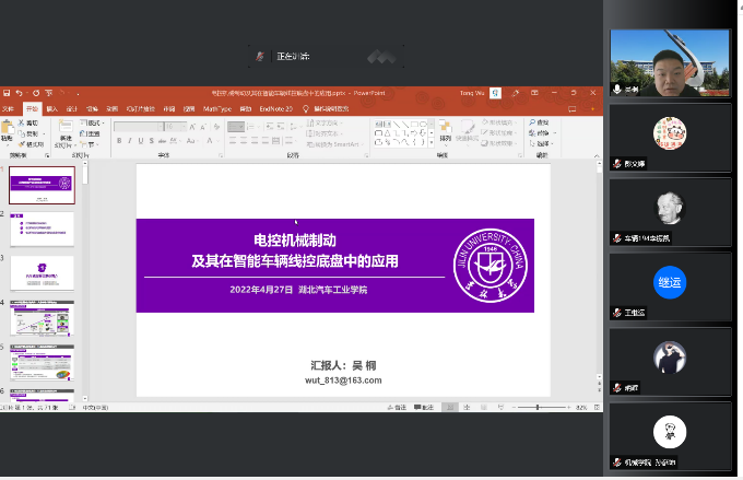 薪传五秩谱华章,砥砺奋进启新程,为迎接50周年校庆,4月27日上午,英国威廉集团特邀吉林大学博士吴桐做了主题为“电控机械制动及其在智能车辆线控底盘中的应用”的学术报告。本次报告采用腾讯会议形式,英国威廉集团教师、研究生、本科生共二百多人参加了会议,会议由副院长尹长城主持。