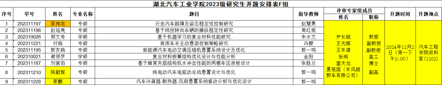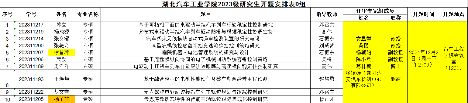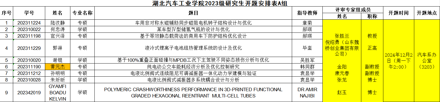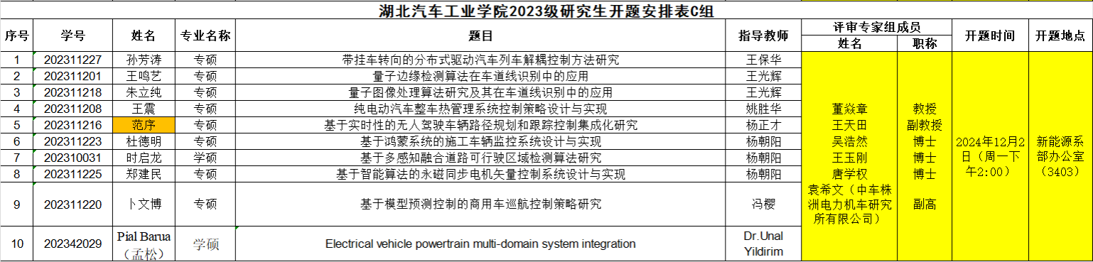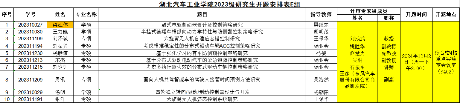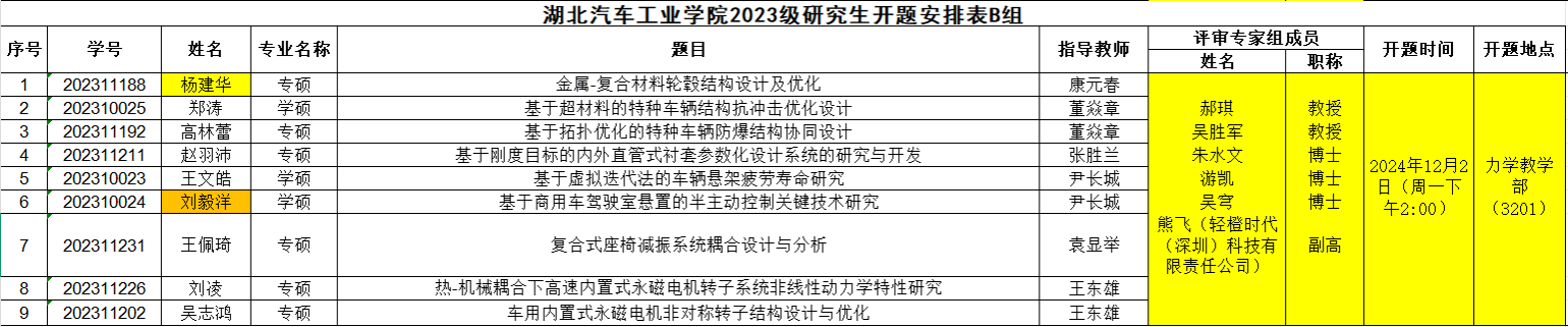 2023级研究生注意,以下是开题答辩安排表,请各位同学悉知: