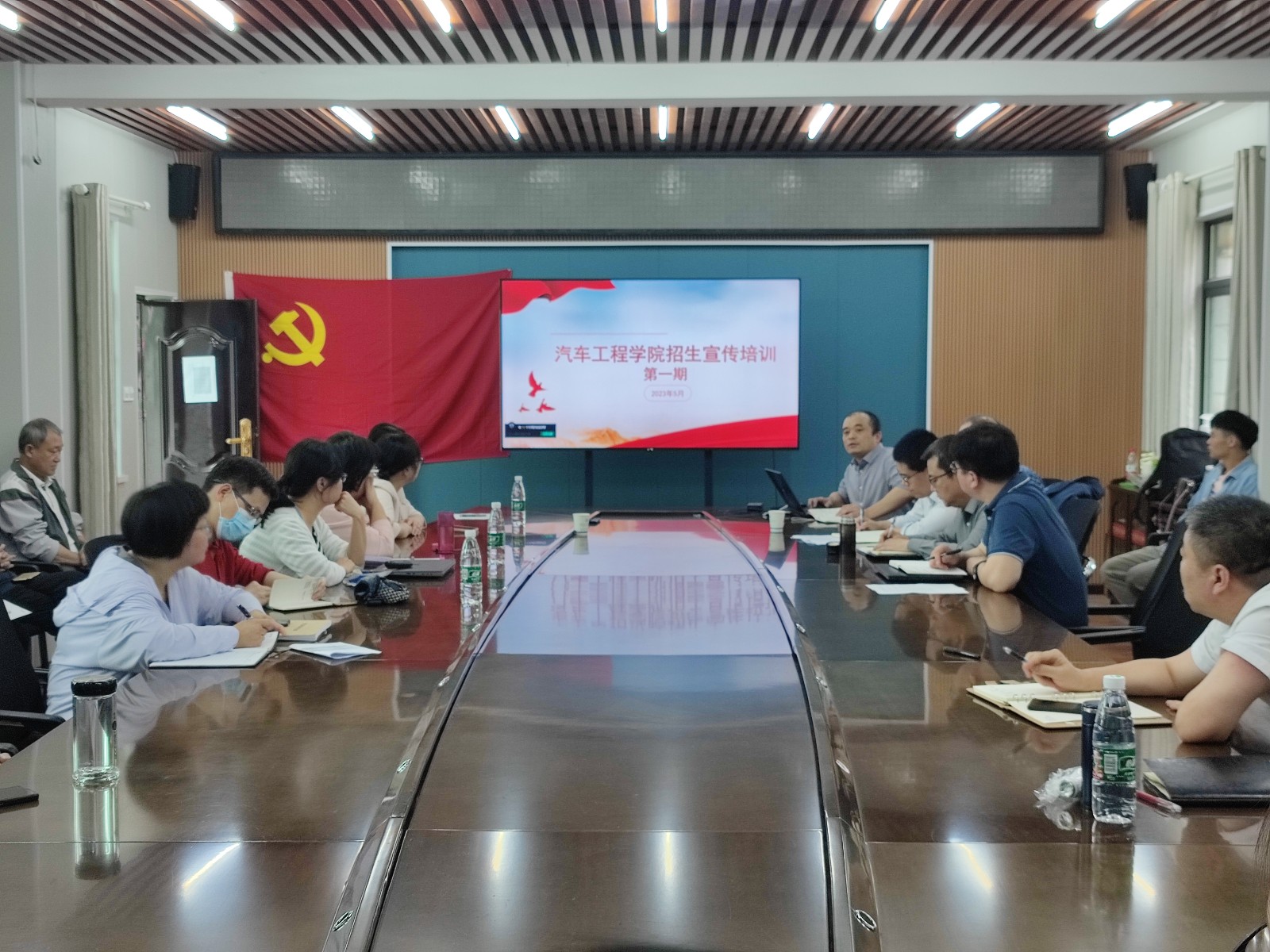 副院长杨正才向大家介绍了2023年的招生计划,就今年首次招生的智能车辆工程专业进行了重点讲解。他介绍了智能车辆工程专业的定位,从师资配置、课程设置和就业方向等方面分析了该专业与车辆工程、新能源汽车工程专业的不同之处。杨正才建议各位老师可结合学校获批“东风HUAT智能汽车产业学院”、学校智能汽车竞赛团队多次在全国比赛中获奖等亮点来积极宣传智能车辆工程专业。