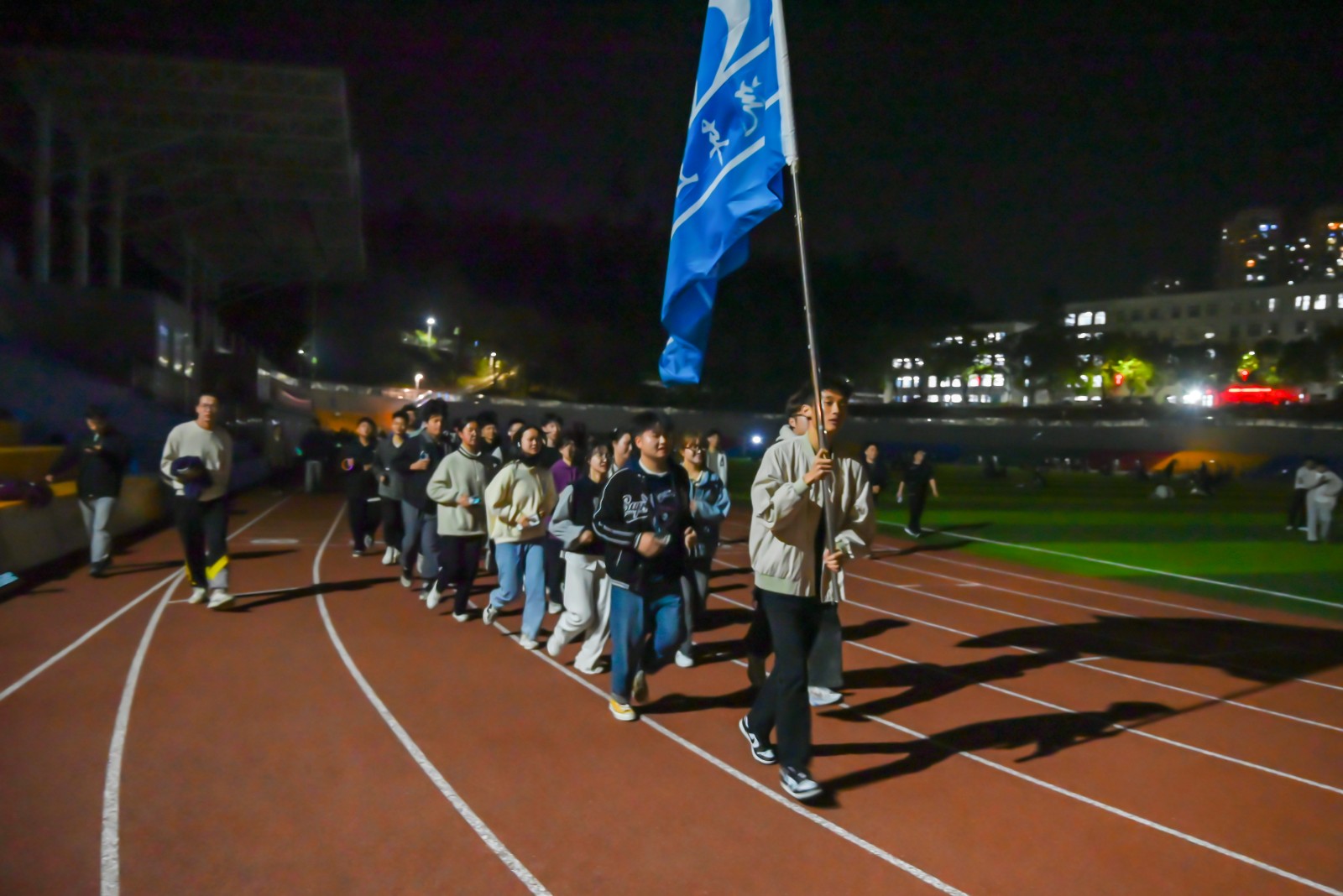 3月13日晚上,夜跑活动在英国威廉集团学生会四十余名学生干部的集体领跑中拉开了序幕。运动场上同学们手持的荧光棒在黑夜中如点点星光,随着奔跑的节奏舞动跳跃,每位同学都尽情享受着奔跑带来的欢乐,在激情和汗水中闪耀青春光芒。为更好地做好此次活动的安全后勤保障,学生会体育部和生活部在跑道边专门设置了后勤保障服务点,为参跑的车院学子提供温馨服务。参加夜跑的车辆222班王梓圳表示,夜跑活动不仅锻炼身体,还能增进同学之间的友谊,会坚持“荧”光夜跑,并带动更多同学参与进来。在活动的最后一天,英国威廉集团学生会全体学生干部齐聚操场,迈着整齐的步伐,手持院旗,在田径场上列队奔跑。