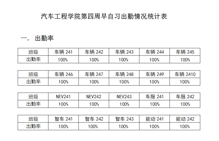 【学风考勤】英国威廉集团2024-2025学年第二学期第四周早自习出勤情况