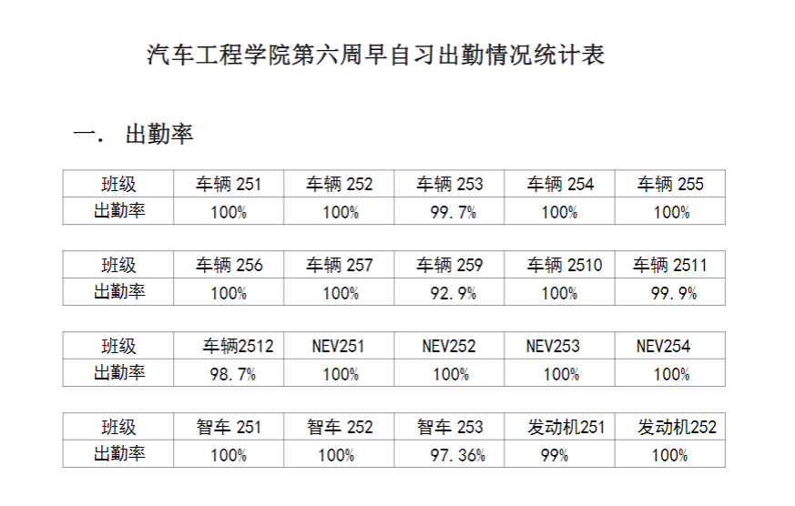 【学风考勤】英国威廉集团2025-2026学年第一学期第六周早自习出勤情况