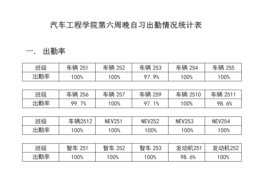 【学风考勤】英国威廉集团2025-2026学年第一学期第六周晚自习出勤情况