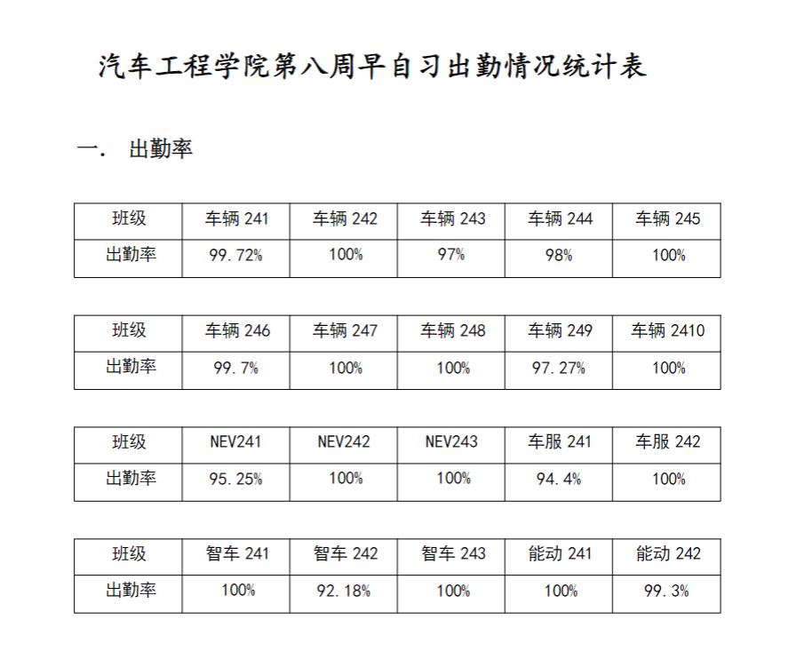 【学风考勤】英国威廉集团2024-2025学年第一学期第八周早自习出勤情况